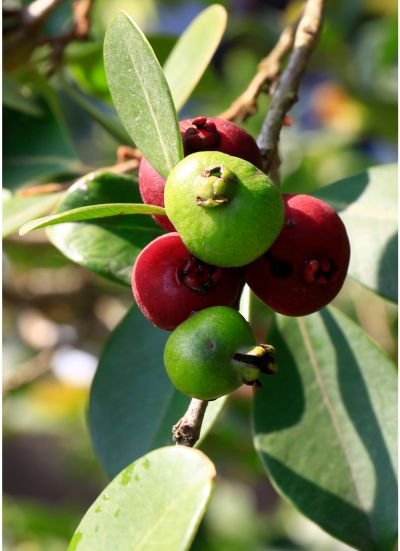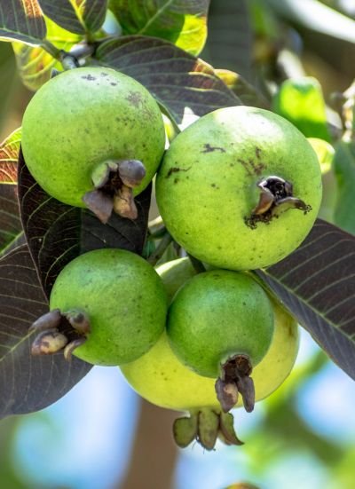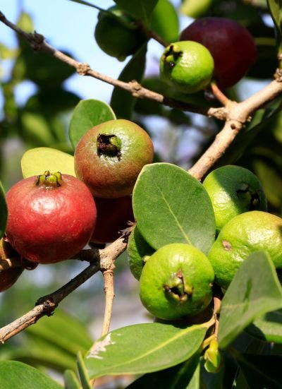 Chinese Guava (Psidium cattleianum) – A hardy, tropical fruit plant known for its glossy green leaves and small, round, reddish-purple fruits with a sweet, aromatic flavor. Easy to grow in warm climates, it is ideal for home gardens, hedges, and landscaping, offering both beauty and delicious seasonal harvests.
